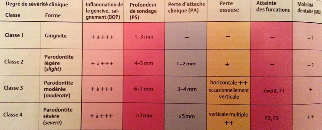 Parodontite = perte d’attache ( os , gencive, ligaments , cément radiculaire) , partiellement réversible par traitement non chirurgical ( détartrages et surfaçages radiculaires ) ou chirurgical et reprise correcte de l'hygiène dentaire et maintenance parodontale régulière . La perte osseuse horizontale est irréversible. On peut régénérer l’os partiellement dans le cas des lésions osseuses verticales.