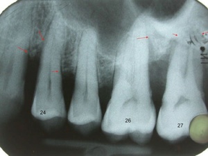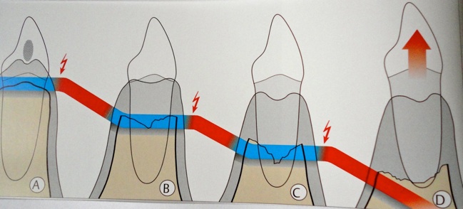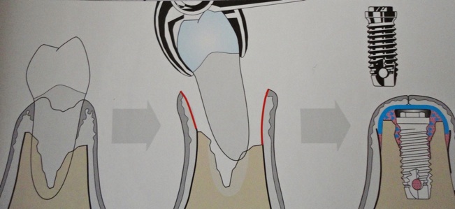 Pour certaines dents il faut prendre la décision d’extraction et remplacement par des implants , avant que la résorption osseuse soit trop avancée.