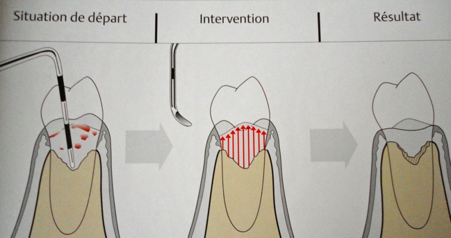 - diminuer la profondeur de la poche parodontale , pour recréer des conditions favorables à une maintenance à long terme
