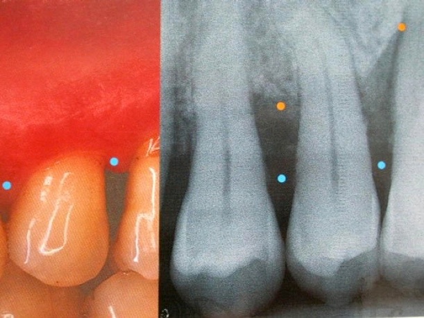 2.Pour le parodonte épais, la résorption osseuse est accompagné par une faible récession gingivale et de la formation d’une poche parodontale